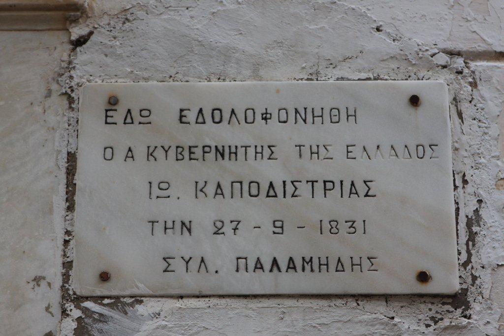 | Το σημείο της δολοφονίας του Καποδίστρια στο Ναύπλιο |